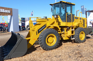 Pala cargadora presentada como una pala articulada, con motor MWM, amplia cabina con buena visión y acceso, transmisión total hidrostática entre otras cosas.